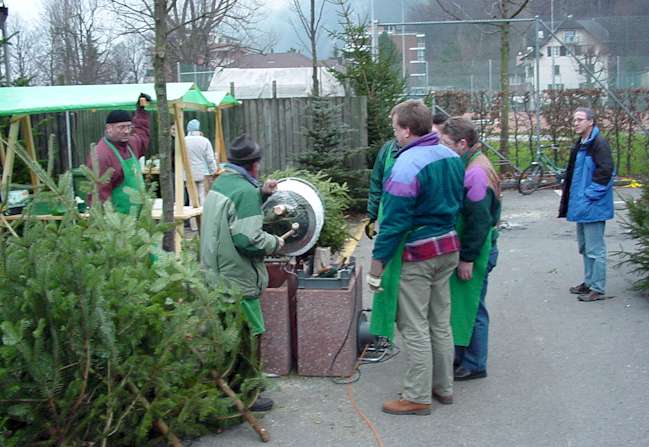 Chef Walti zeigt uns seine Tricks. Nach 16.00 Uhr ging's ans zusammenräumen und Walti wie wir können zufrieden auf den erfolgreichen ersten Christbaumverkauf zurück schauen.