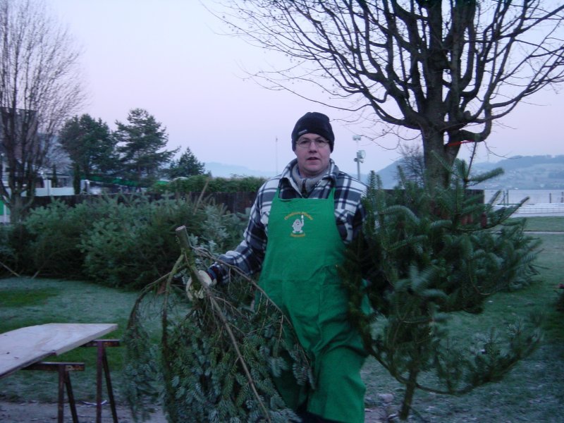 Es ist 07.45 Uhr wir beginnen mit dem Aufstellen der Christbäume ..