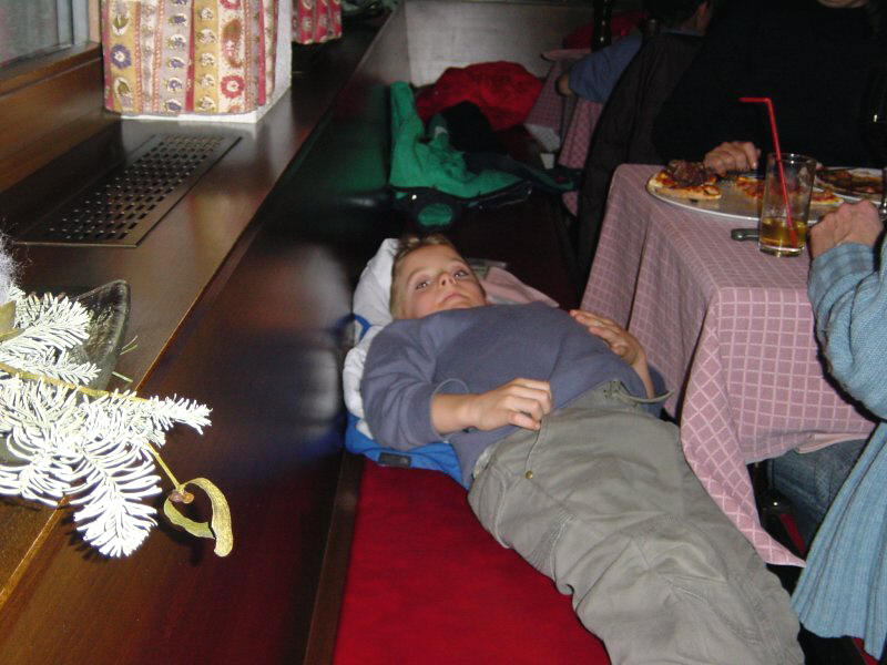 Im Hafenrestaurant geniessen wir eine feine Pizza und am Nachbartisch "langweit"