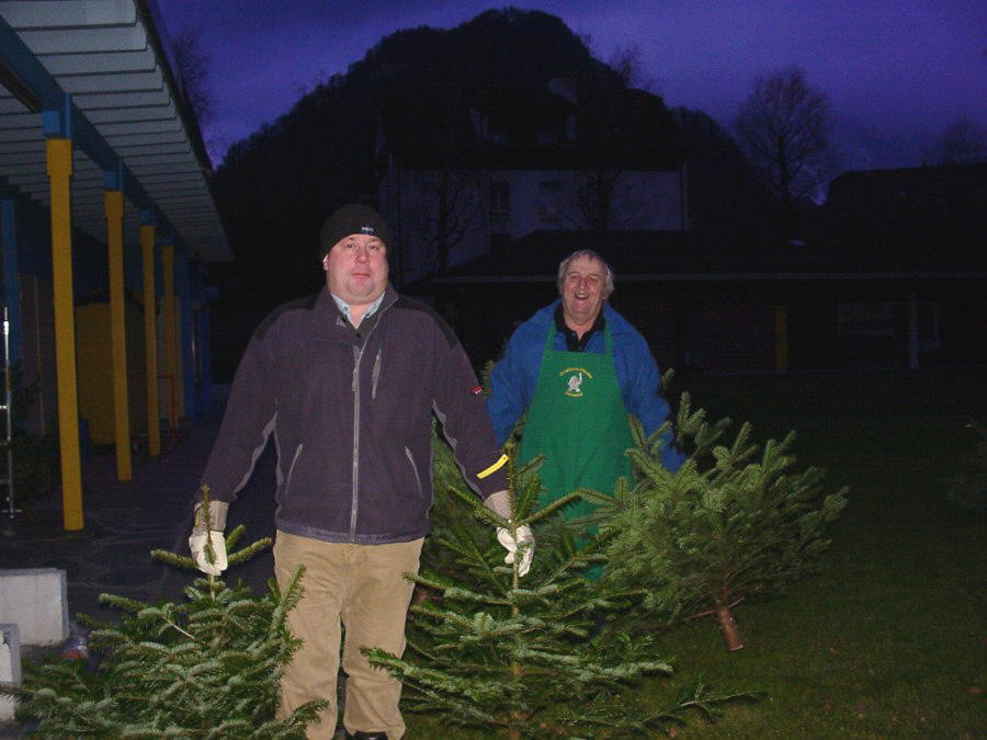 Die Bäume werden vom Lager auf den Verkaufsplatz gebracht