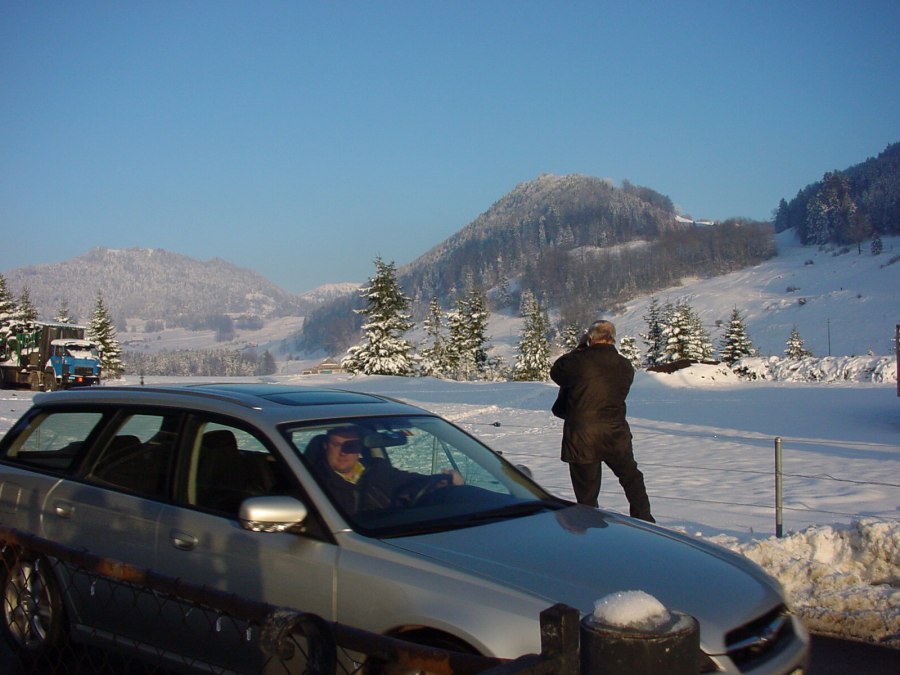In Obbürgen angekommen, macht Jost sofort ein Foto und Beat parkiert sein Auto