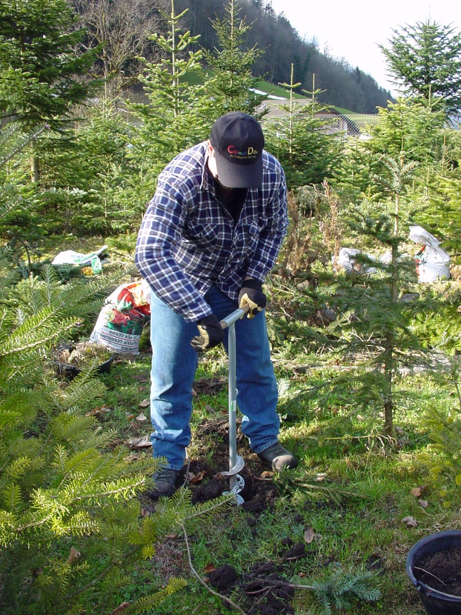 Fredi macht die Löcher für die neuen Bäume