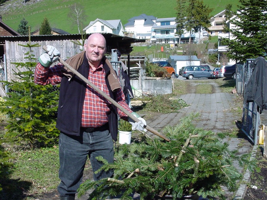 Thomas am zusammentragen und entsorgen von alten Ästen