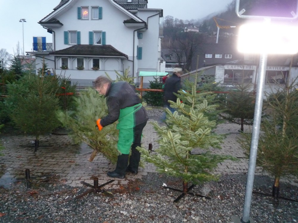 nun Samstagmorgen kurz nach 08.00 Uhr die Christbäume werden verteilt ...