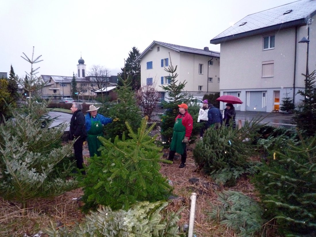 Eigentlich wäre der Verkauf erst ab 08.30 Uhr. Doch um diese Zeit haben wir schon etliche Bäume verkauft