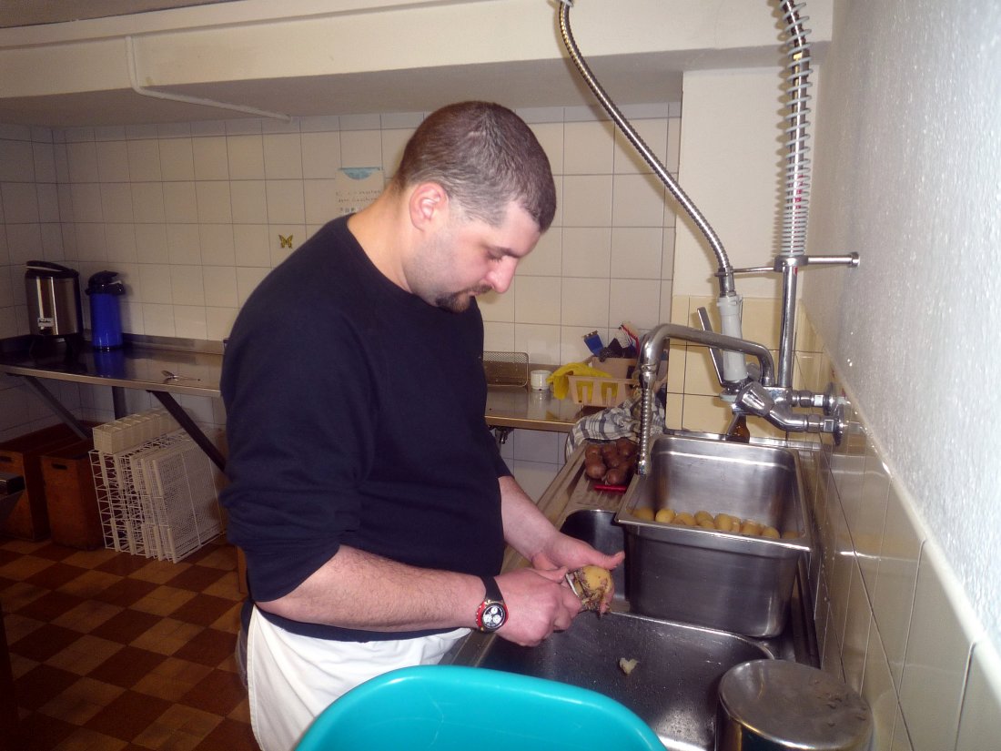 Stefan beim Kartoffel rüsten
