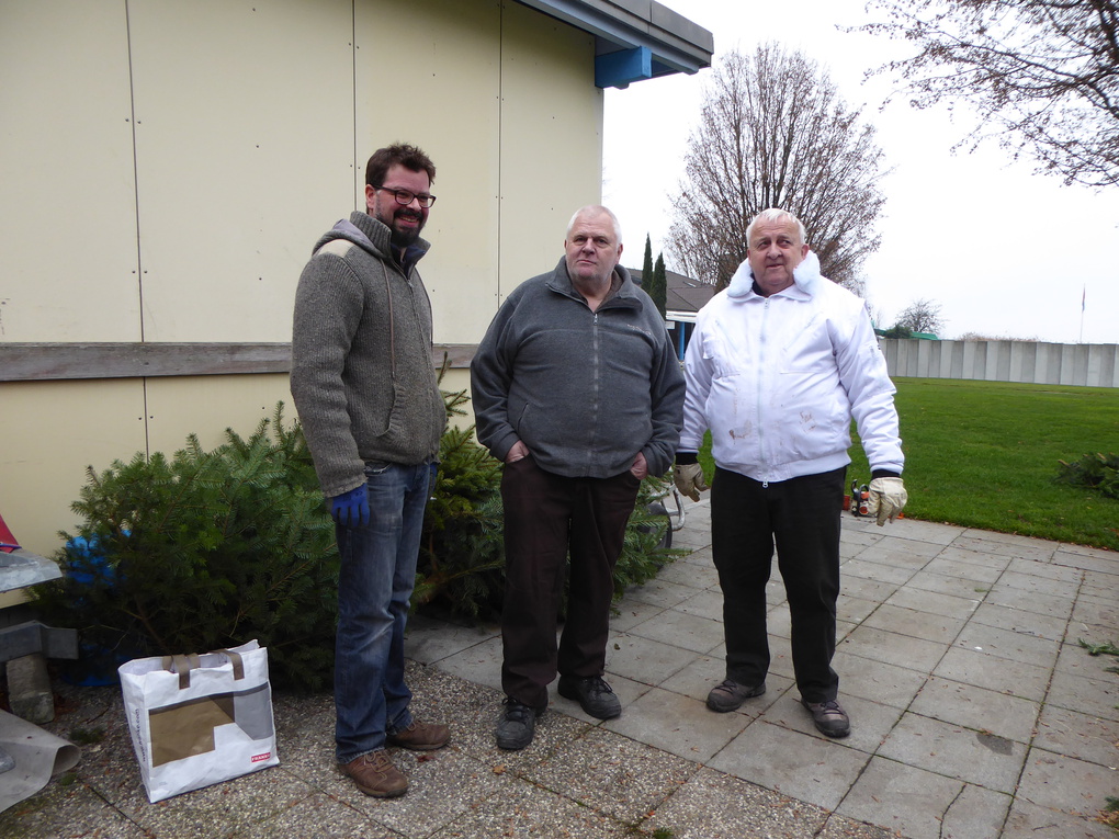 Am Freitag vor dem Verkauf werden die Bäume für den Verkauf fertig gemacht