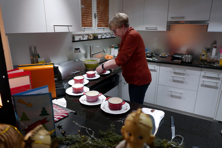 Pia am Anrichten der Suppe