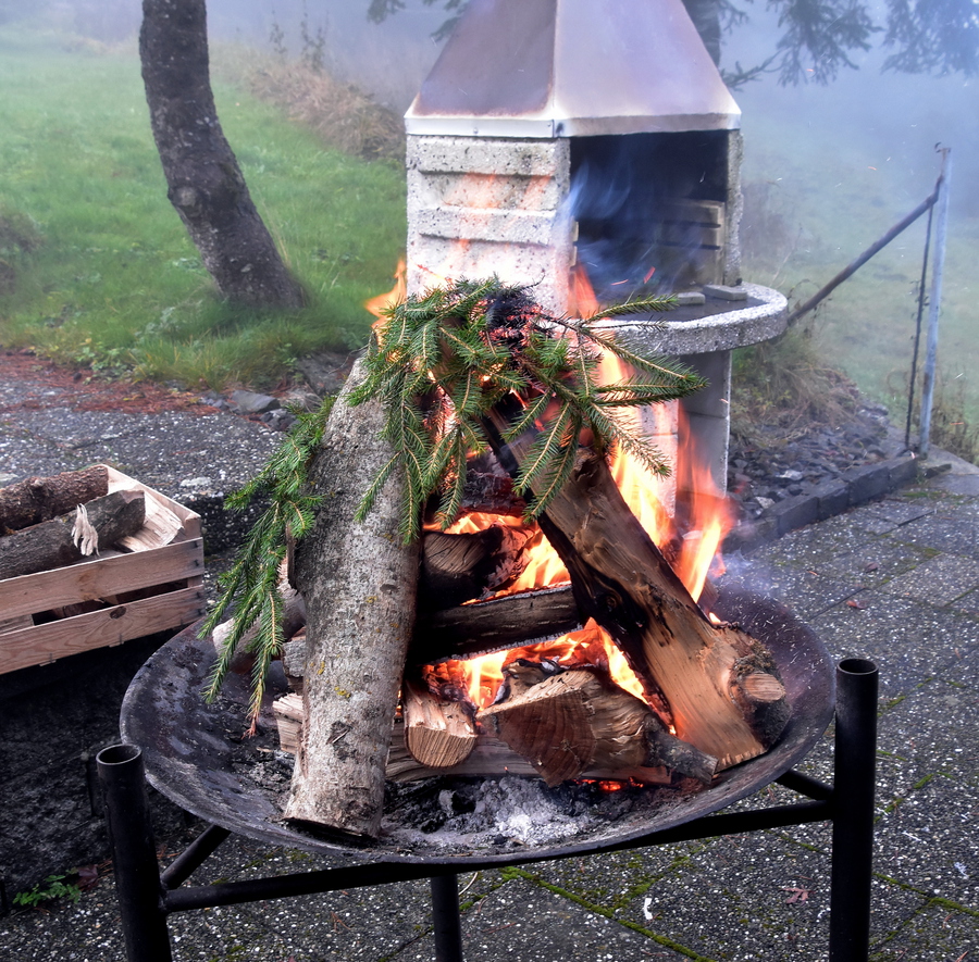 Pirmin hat ein wärmendes Feuer zum Apéro angezündet