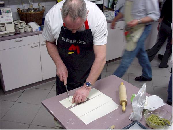 Fredi Banz am schneiden des Teiges für den Apéro