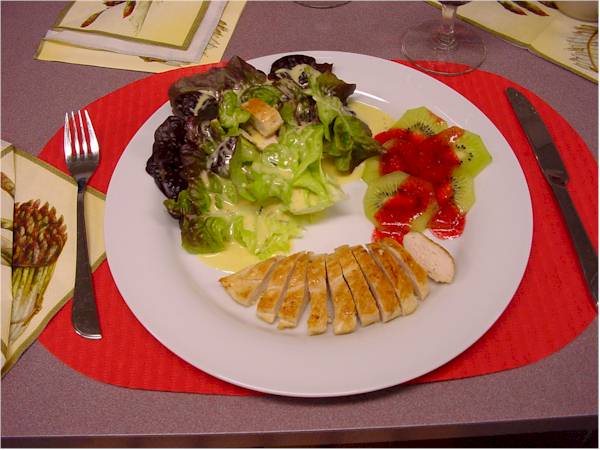 Eicblattsalat mit Kiwi und gebratener Poulardenbrust