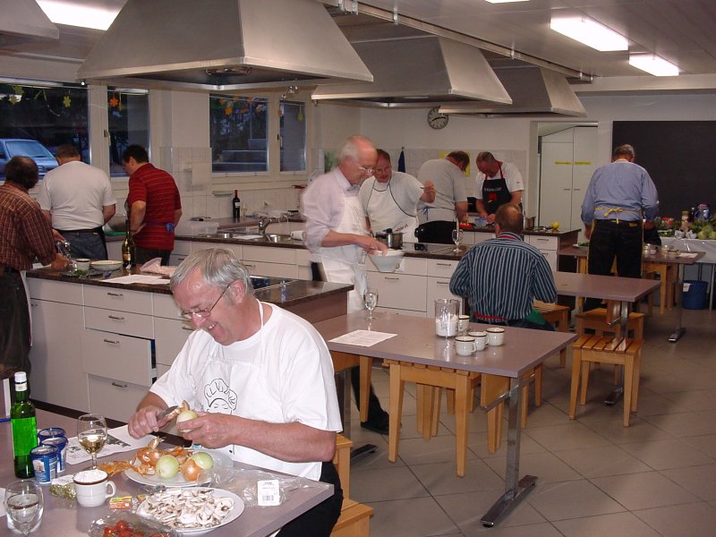 sodann beginnen wir mit der Arbeit. Jost beim Zwiebeln schneiden (jetzt noch mit einem lachenden Gesicht)