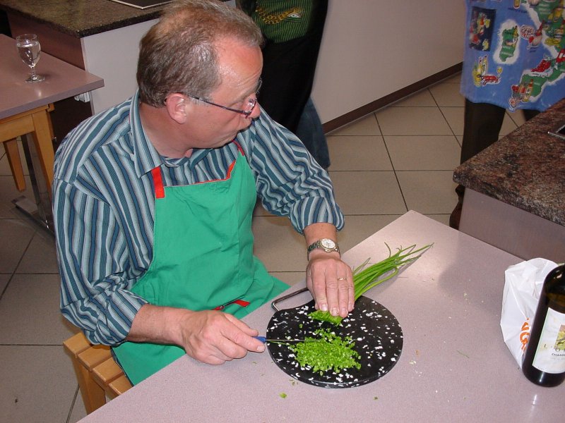 und Jonny beim Schnittlauch hacken