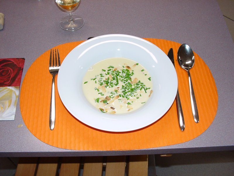 und die Knoblauchcrèmesuppe ist serviert