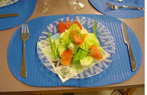 Kopfsalatherzen mit Räucherlachs gibt's am Tisch 1 als Vorspeise