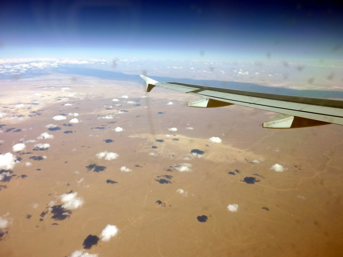Auf Flügelhöhe der Nil, auf beiden Seiten ist aber fast nur Wüste sichtbar