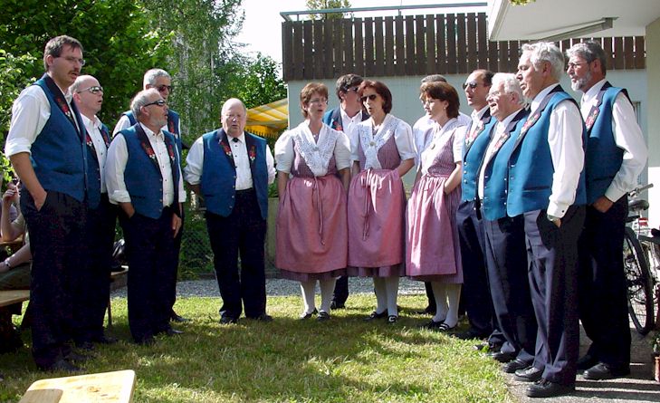 Am 24. Mai nachmittags fuhr ein Car vor unser Haus vor und der Jodelklub Heimeli machte einen kurzen Halt.Auf ihrem 2tägigen Ausflug kamen sie von Stans her. Elise Inglin als Mitorganisatorin hatte die Idee, bei uns im Garten nach dem "anstrengenden" Museeumsbesuch im Winkelriedhaus vor der Weiterfahrt nach Schwarzenberg den Apéro bei uns einzunehmen.